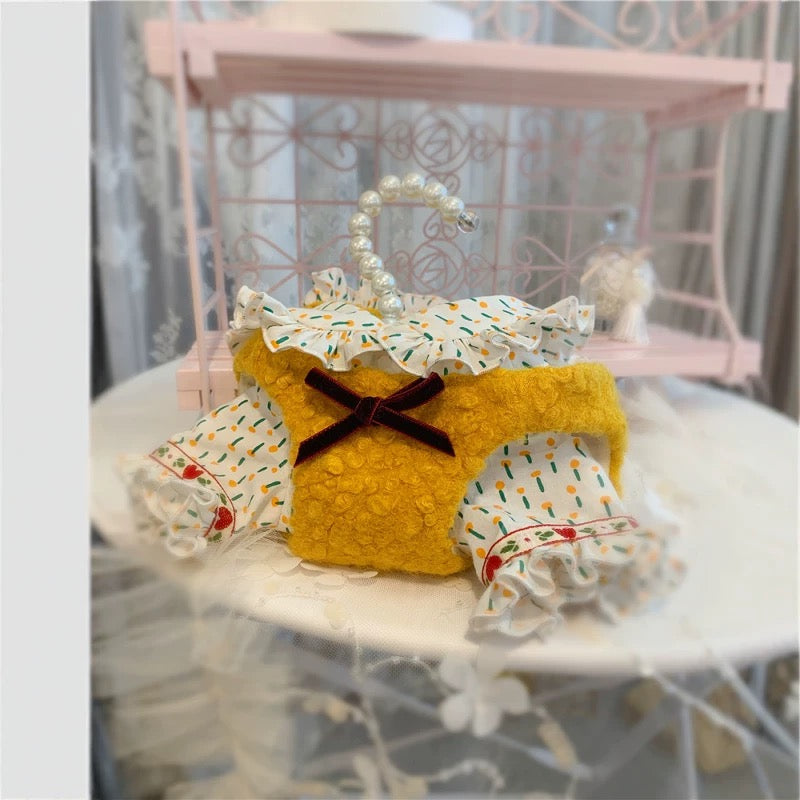 The Elsamilu Cozy Chick Vest & Ruffle Shirt Set is designed for small dogs and cats, featuring a soft vest paired with a frilly ruffle shirt. Perfect for autumn and winter outings, photoshoots, and daily cuteness.
