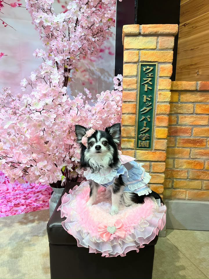 The Elsamilu Girly Sailor Ribbon Pet Dress is designed for small dogs and cats, featuring a charming sailor collar, ribbon accents, and a soft plush bow for extra cuteness. Perfect for birthdays, parties, and stylish everyday wear.