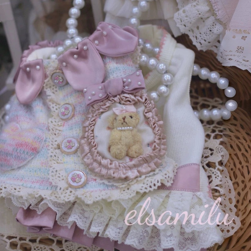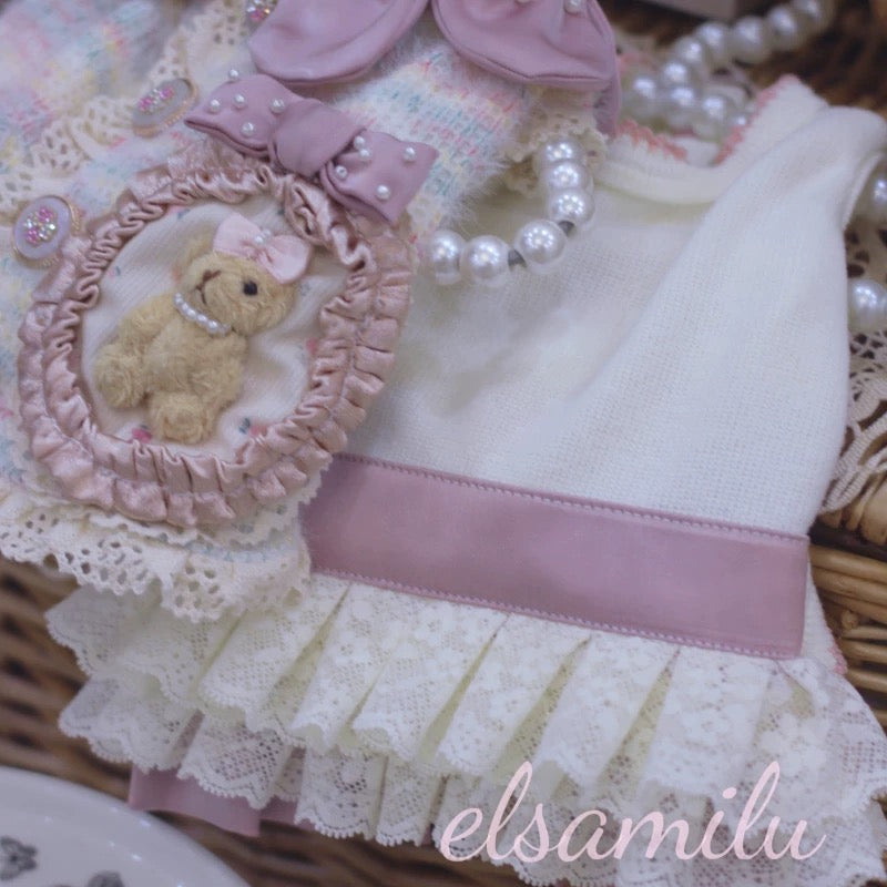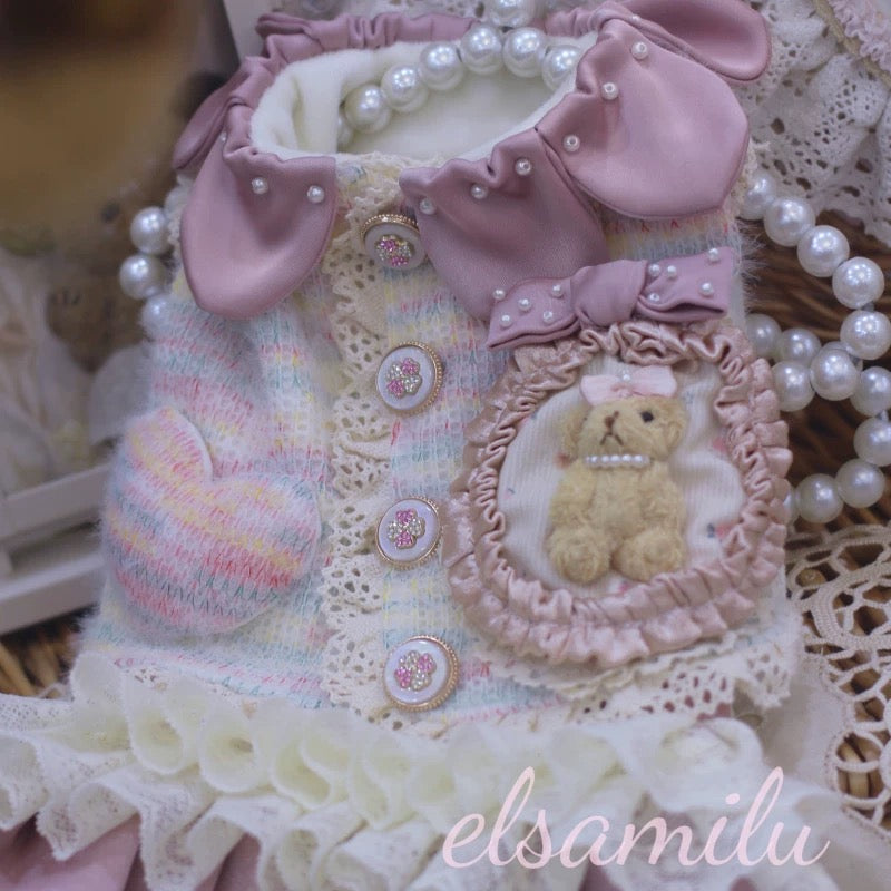 The Elsamilu Layered Knit Pet One-Piece Set is designed for small dogs and cats, combining layered knit details with a soft and cozy fit. Perfect for autumn and winter walks, parties, or cute everyday wear.