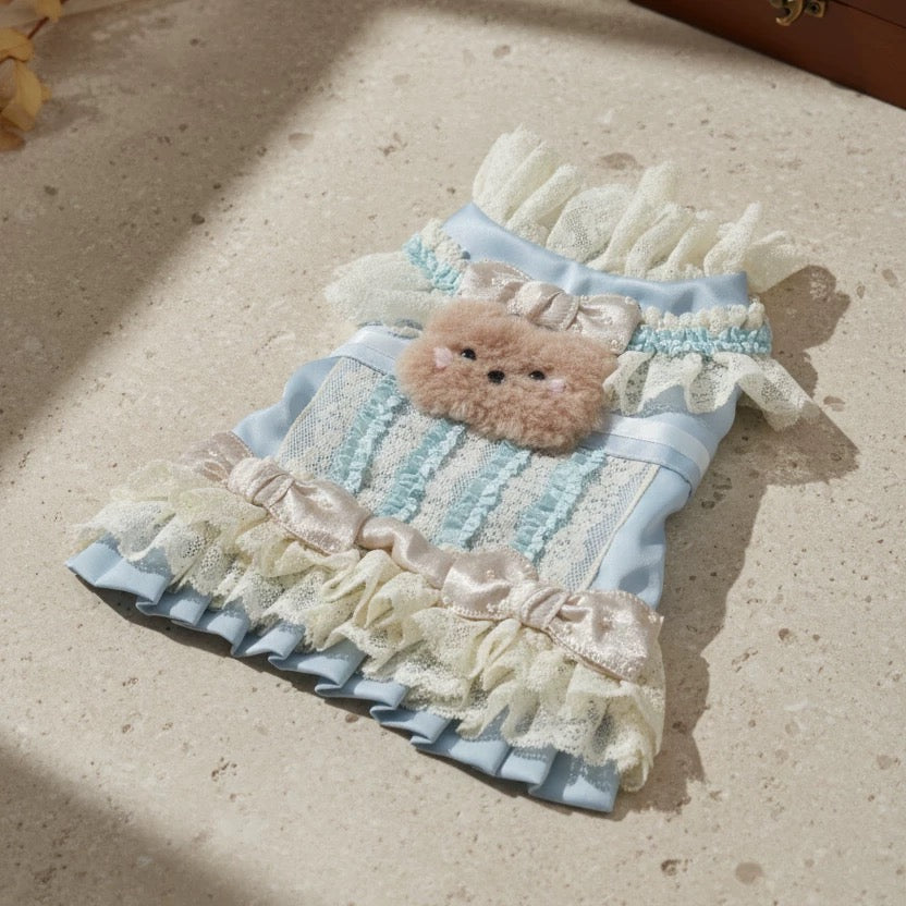 Elsamilu Lovely Bear Romantic Pet Dress – Blue Lace Outfit for Small Dogs & Cats