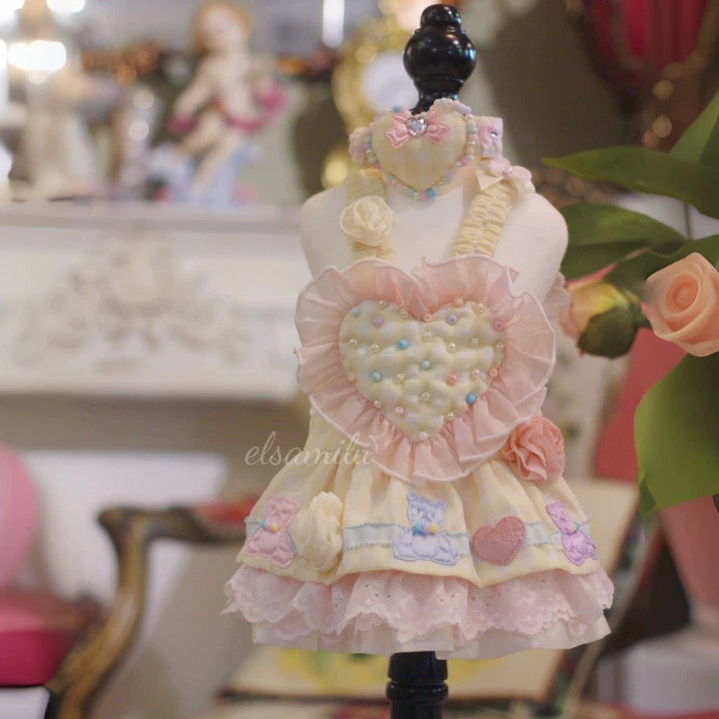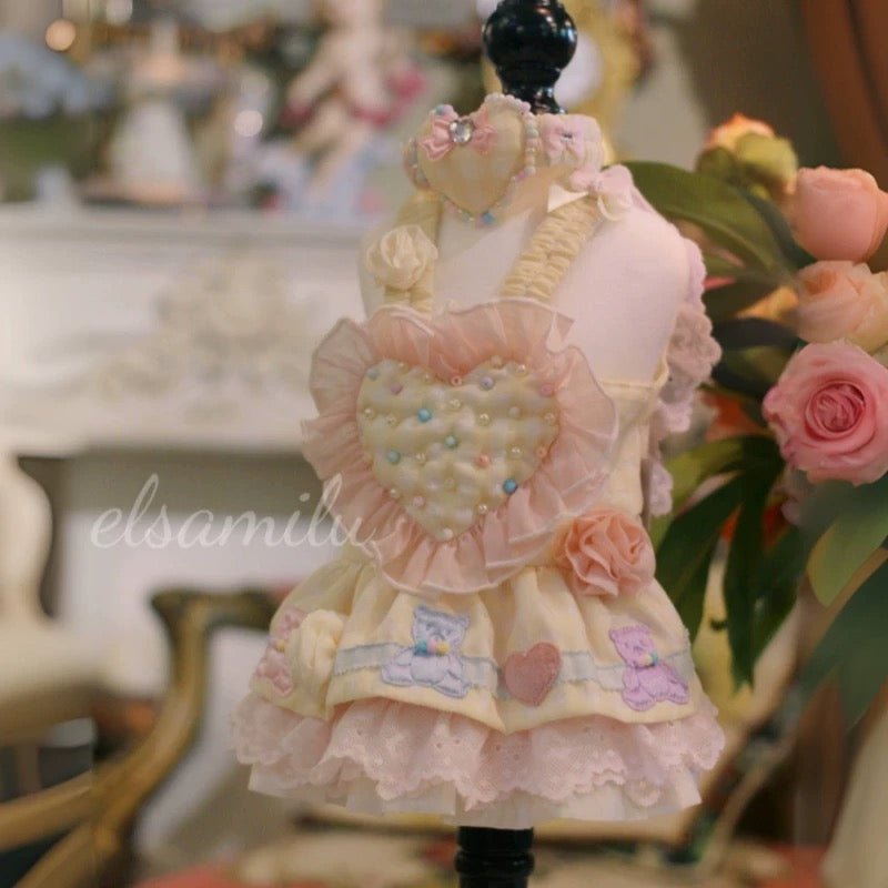 Add timeless elegance to your petβs wardrobe with the Elsamilu Lovely Heart Romantic Pet Dress Set in Beige π€