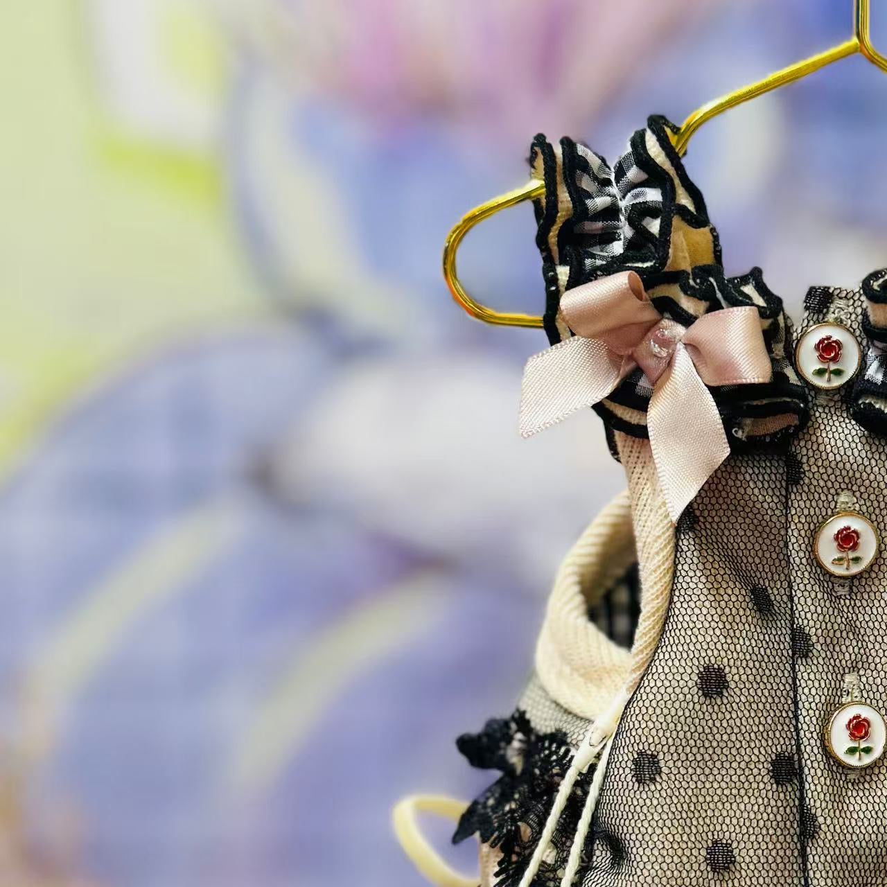 The Elsamilu Mocha Black Ruffle Pet Dress is designed for small dogs and cats, featuring playful heart and cherry motifs with delicate ruffle details. A perfect mix of elegance and cuteness for parties, birthdays, and stylish everyday wear.